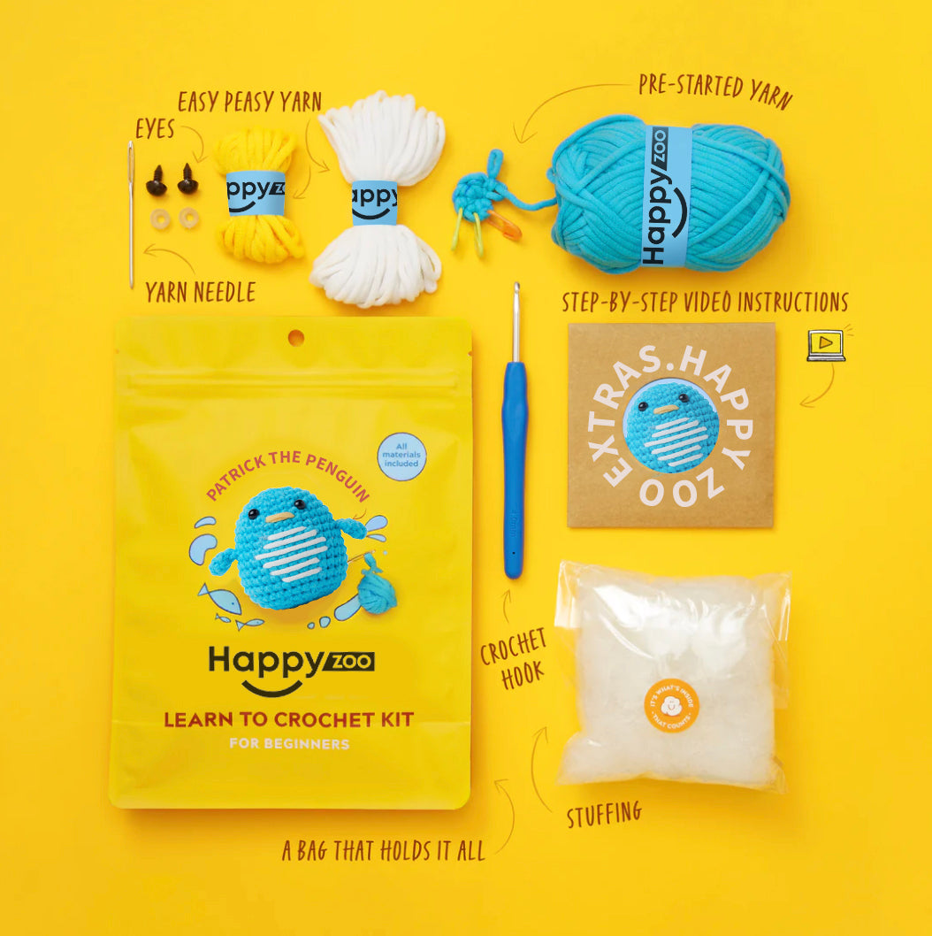Patrick the Penguin - Happy Zoo Beginners Crochet Kit - Perfect Gift with Step-by-Step Video Tutorial